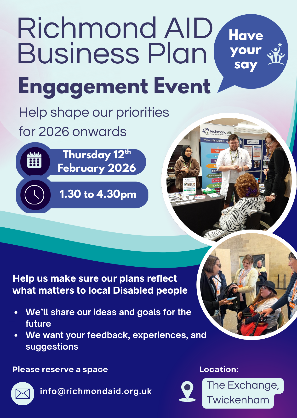 Join us at our friendly Business Plan Event for 2026 onwards where you can be involved in the future of Richmond AID.